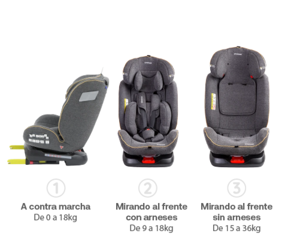 3en1 ¡Descubrí la silla que se adapta al crecimiento de tu bebé!Nuestra silla de auto 3 en 1 es la solución ideal desde el nacimiento hasta los 36 kg. (Grupo 0+/1/2/3). Con la capacidad de viajar a contramarcha hasta los 18 kg, acompaña cada etapa del crecimiento de tu bebé con comodidad y seguridad. |